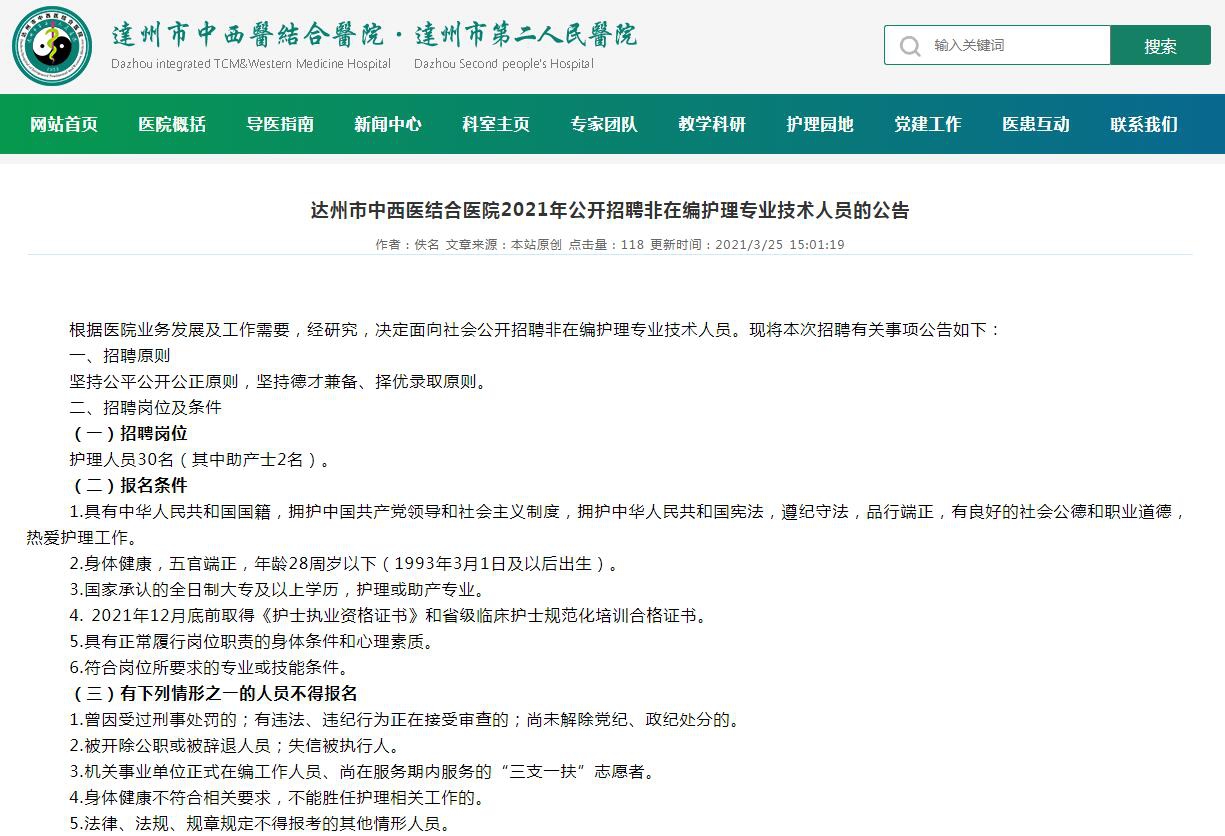熱忱歡迎各路英才踴躍報名,達(dá)州市中西醫(yī)結(jié)合醫(yī)院期待與您攜手共進(jìn)。